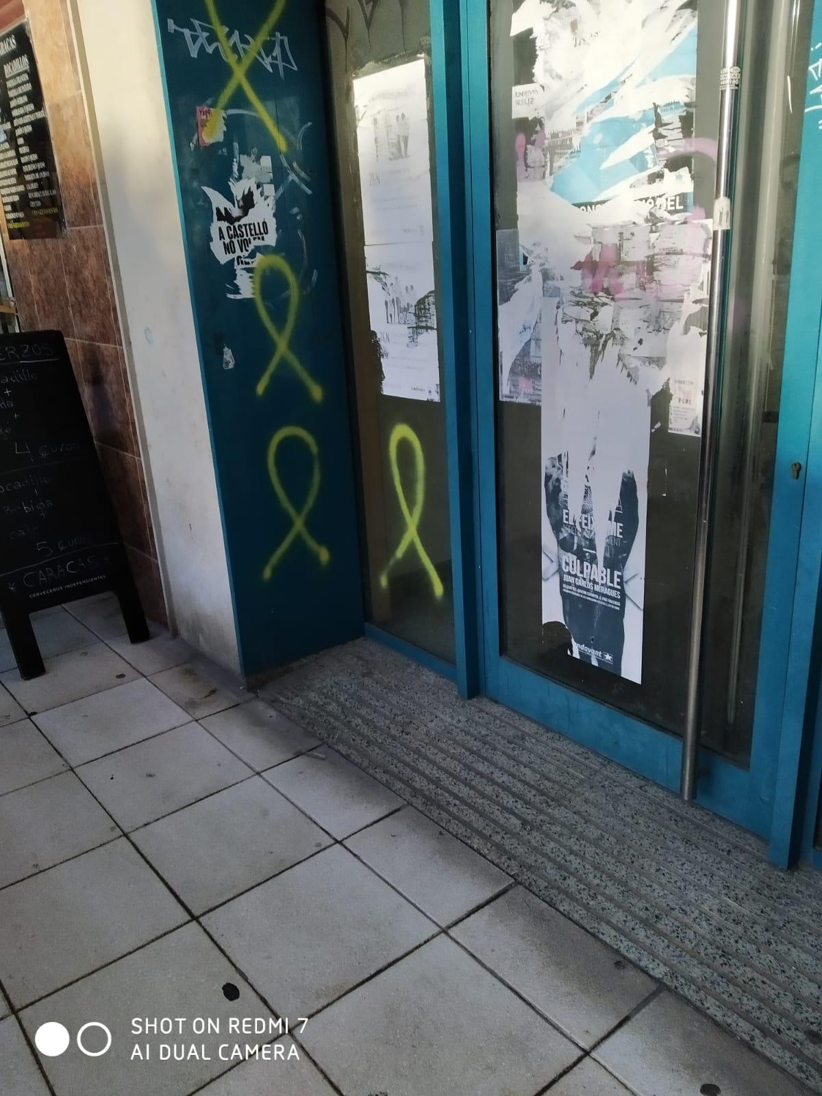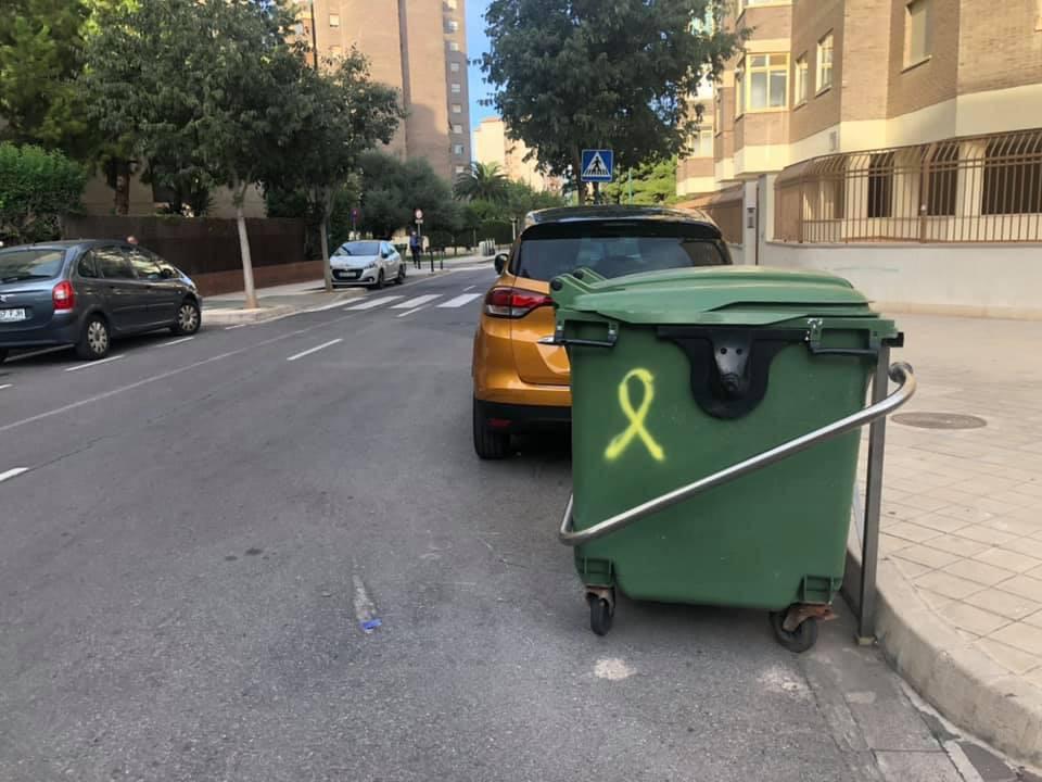 La ‘movida’ catalana también llega a Castellón aunque en forma de pintadas y lazos amarillos que han comenzado a aparecer en el mobiliario urbano de la ciudad. Esta situación ha generado malestar entre los vecinos y protestas por parte del GMP, cuya portavoz, Begoña Carrasco, ha atacado a los concejales que han dado apoyo a las proclamas independentistas.
