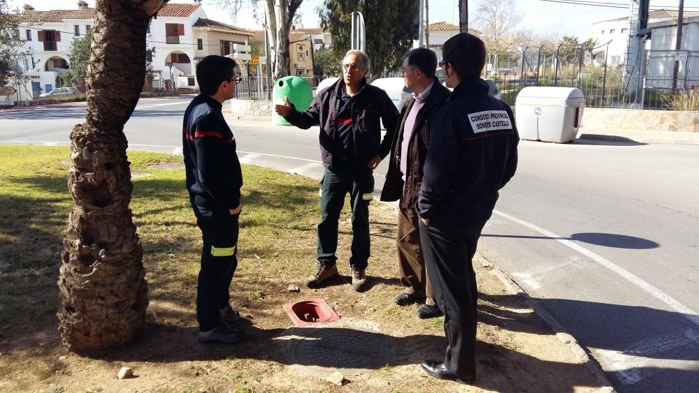 El regidor d'Urbanisme, José Colom, s'ha reunit avui amb el tècnic forestal del Consorci de Bombers, Pablo Vila, el cap de mig aeris del Consorci, Vicent Bellés i José Antonio Nebot, responsable de la Brigada Forestal d'Alcalà, per tal de començar a marcar sobre el terreny la ubicació de nous hidrants i preses d'aigua, així com iniciar el disseny de les rutes d'evacuació.