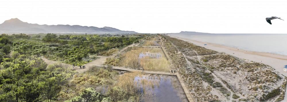 El tercer tramo corresponde a la playa de l'Ahuir, donde el programa de paisaje supone una gran oportunidad para regenerar la antigua mallada y su conexión con el río Vaca, la comunicación de la vía litoral a través de las pasarelas existentes y la relocalización del actual aparcamiento situándolo fuera del ámbito dunar señalan desde la dirección general.