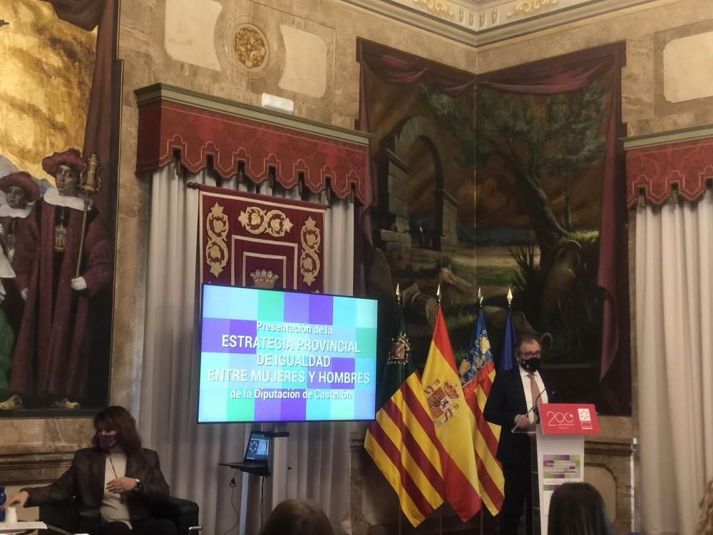 La Diputación de Castellón ha presentado hoy el Plan Estratégico de Igualdad entre Mujeres y Hombres para 2022-2024. El acto ha contado con la presencia del presidente, José Martí y la vicepresidenta Patria Puerta, junto con la subdelegada del Gobierno, Soledad Ten, y los representantes de las diferentes mancomunidades y ayuntamientos de la provincia.
