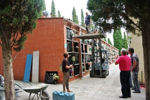 El Ayuntamiento de Almassora ha procedido a reforzar las cubiertas en una fila de nichos del cementerio municipal durante las últimas semanas al objeto de garantizar la estabilidad de las estructuras del camposanto. El regidor de Servicios Públicos, José Martínez, y la regidora delegada del área de Cementerio, Ramona Palomares, han visitado las dependencias públicas en las que se han empleado varios operarios contratados por el consistorio a través del V Plan Municipal de Empleo.