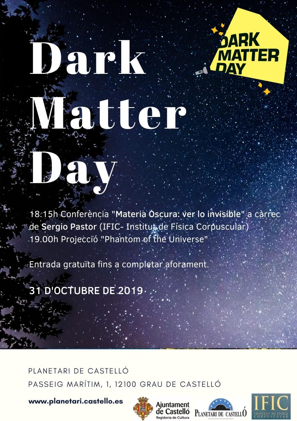 301019 Dia de la Matèria Fosca (Cartell)L'edil de Cultura, Verònica Ruiz, ha animat les famílies a passar "una nit diferent, aprofitant el festiu de divendres per a descobrir més dades sobre ciència i fomentar l'esperit investigador entre xicotets i joves". La jornada, impulsada per departament que dirigeix Ruiz, ha estat organitzada e n col·laboració amb l'Institut de Física Corpuscular, centre mixt de la Universitat de València i el Consejo Superior de Investigaciones Científicas (CSIC).