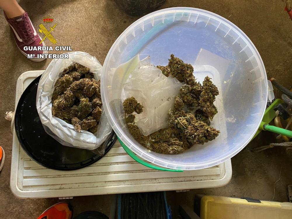 Una vez se encontró este lugar, se comprobó un consumo anómalo de electricidad, y una vez en el interior, hallaron unos bloques de hormigón con la cantidad de medio kilo de cogollos secos de marihuana dispuestos para su venta.
