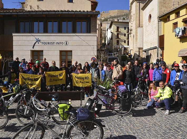 La Plataforma Anti-Fracking Comarcas de Castellón y la Asociación AMA han organizado hoy la IV Marcha ciclista anti-Fracking, con salida desde Morella. Allí, los representantes de ambas entidades, Esteban Doménech y Toni Velarde, junto al concejal de desarrollo rural, Rafa Pallarés, han atendido a los medios de comunicación para explicar los motivos de llevar a cabo esta actividad. El principal es seguir concienciando de los peligros del empleo de esta técnica de extracción petrolífera para el medio ambiente y la salud. Esta marcha durará tres días, en los que se realizarán las etapas Morella-Tirig, desde este punto a Vilafamés y desde aquí, a Castellón. Hoy, han tomado la salida decenas de participantes.