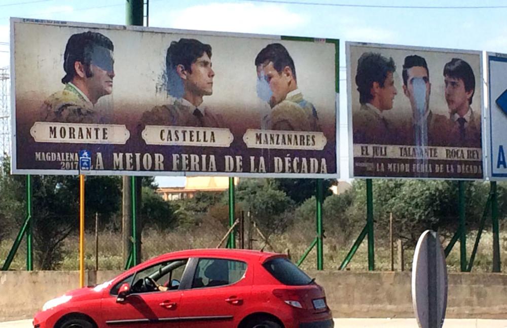 El vandalismo antitaurino no cesa. Esta vez ha sido Castellón quien ha sufrido las consecuencias de los antis, que una ocasión más han mostrado su rechazo a la Tauromaquia con un acto de salvajismo intolerable. La capital de la Plana ha amanecido esta mañana con pintadas en las distintas vallas publicitarias de la Feria de la Magdalena que están ubicadas por toda la provincia. Estos gamberros han pintado las caras de los toreros anunciados en Magdalena, incluso en algunas de las vallas, han mostrado su rechazo a que esta Fiesta sea considerada un arte.