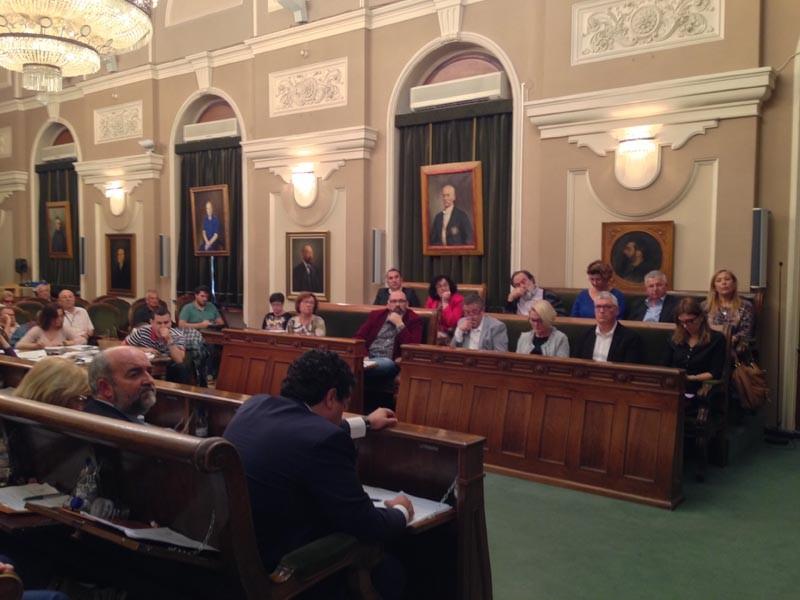 Espadas en alto también en el tema de la Sgae, moción presentada por Compromís, para que el Ayuntamiento se adhiera a convenios que permitan rebajar el importe que se paga a esta entidad por los derechos de autor.