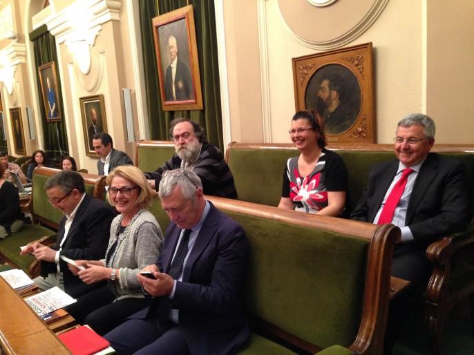 Así las cosas, dos reuniones de portavoces, discusiones en la alcaldía, donde la primera autoridad municipal mostraba su respaldo al informe jurídico que entendía que deberían prevalecer los derechos de concejal de Calles. Reunión después entre los grupos, para estudiar lo que estaba pasando y cómo reaccionar.