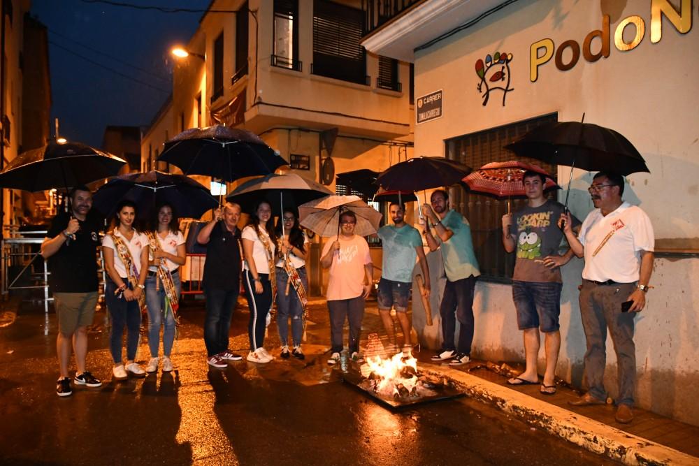 Dilluns de festes és sinònim de carn, fum, foc i moments de reunió a Vila-real amb els éssers més volguts en la tradicional nit de la Xulla encara que en aquesta edició la pluja ha sigut la protagonista, com ja fa anys que no ocorria sent fins i tot part de la tradició.