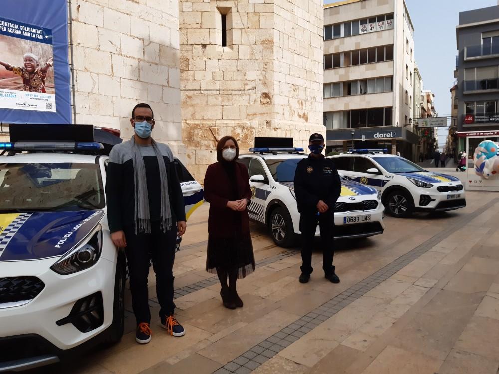 La Policia Local de Benicarló ha incorporat avui tres nous vehicles patrulla que s'han arrendat durant quatre anys per 140.635,20 euros (IVA inclòs). Els tres vehicles són híbrids i automàtics, estan totalment preparats per a la funció de patrulla i estan equipats amb desfibril·ladors.