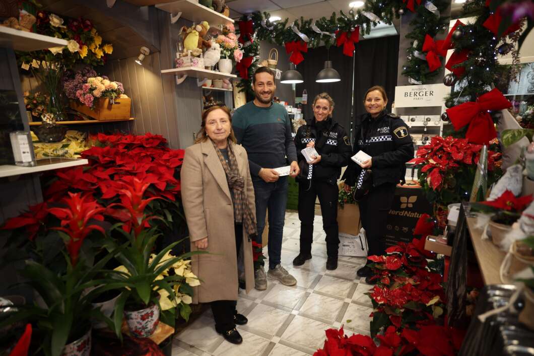 La Policia Local de Burriana ha visitat diversos establiments de la capital de la Plana Baixa per a traslladar personalment la seua felicitació nadalenca al comerç local, en una iniciativa encapçalada per l'intendent cap del cos, Raúl Amat, i diversos membres de la Policia Local.