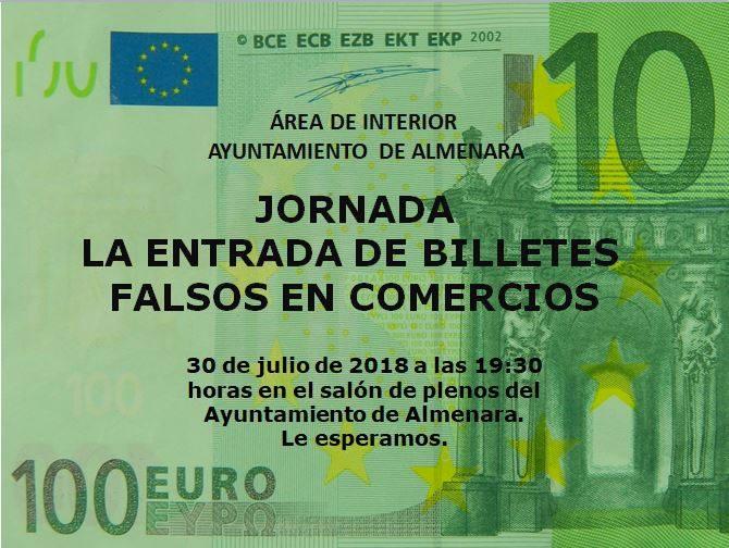 La Policia Local d'Almenara realitzarà el dilluns 30 de juliol a les 19:30 hores en el saló de plens de l'Ajuntament d'Almenara una xarrada destinada als comerciants de la localitat titulada "l'entrada de bitllets falsos en comerços". La xarrada, que estarà impartida per un agent especialitzat, està oberta a tots els comerços de la localitat, que a més rebran una invitació personalitzada.