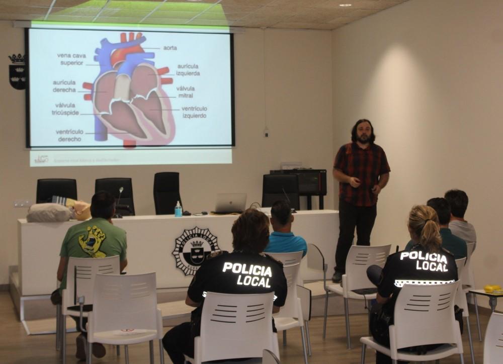 En la jornada l'objectiu de la qual és dotar als efectius policials dels coneixements per a poder reaccionar de manera ràpida, eficaç i correcta davant situacions de parades cardiorespiratòries amb què es puguen trobar durant el servei diari, han assistit agents integrants de la Policia Local.