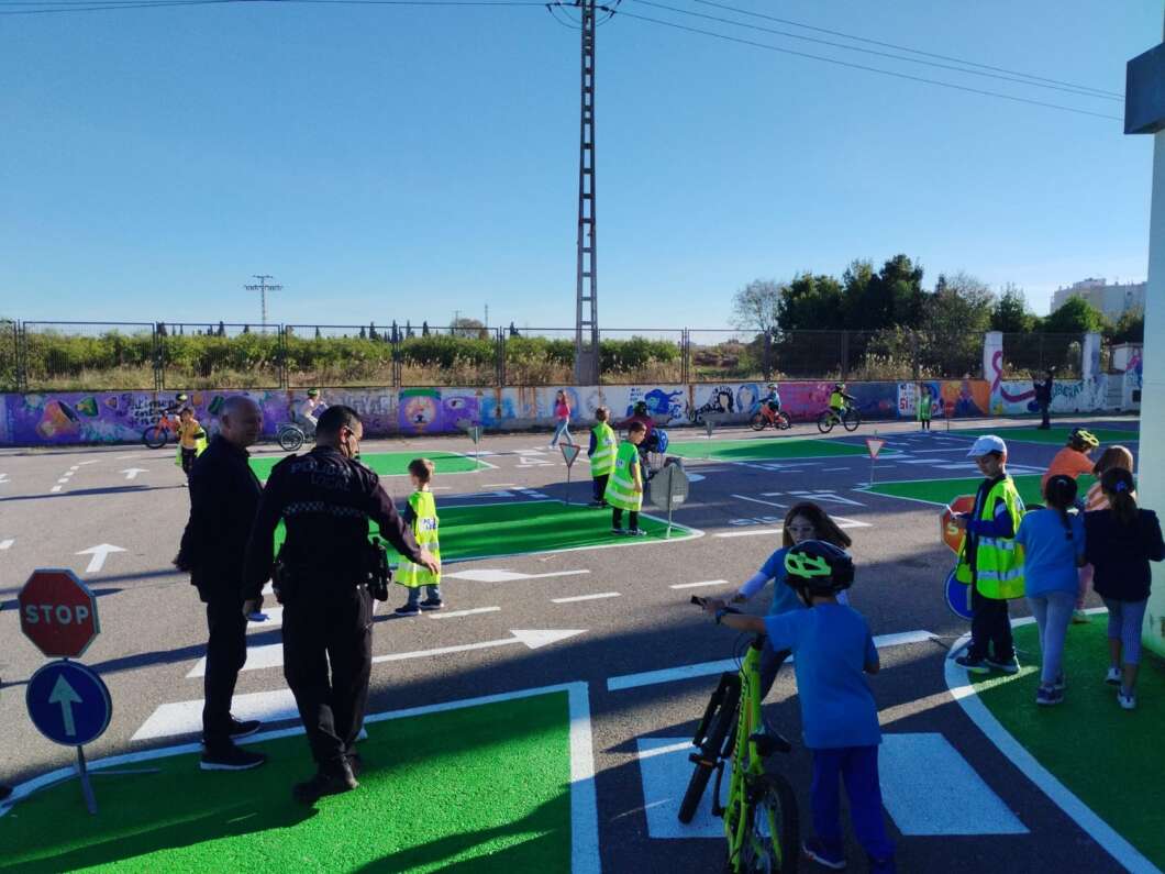 La Policia Local de Burriana, després d'impartir classes teòriques, ha iniciat les classes pràctiques d'educació viària per a alumnes de primària dels centres educatius de la ciutat.