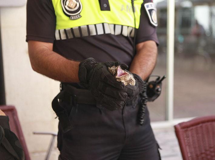 Hasta el lugar se ha desplazado una patrulla de la Unidad de Defensa del Medio Ambiente y Protección Animal (UPROMA) de la Policía Local, junto a la concejala de Sostenibilidad Ambiental, Sara Usó. Los agentes se han hecho cargo del pájaro y lo han catalogado como una cría de Caprimulgus Europaeus (chotacabras europeo).