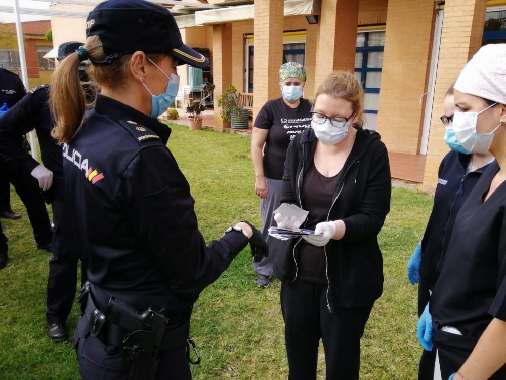 Agentes de la Policía Nacional de Castellón han visitado hoy la Fundación Aspropace que trabaja para las personas afectadas de parálisis cerebral. En su visita, tanto los usuarios como todos los trabajadores, se han mostrado muy contentos dado que lo han pasado mal durante las pasadas semanas por tener un elevado número de residentes contagiados por el Covid-19 y por la falta de material de protección sanitaria.