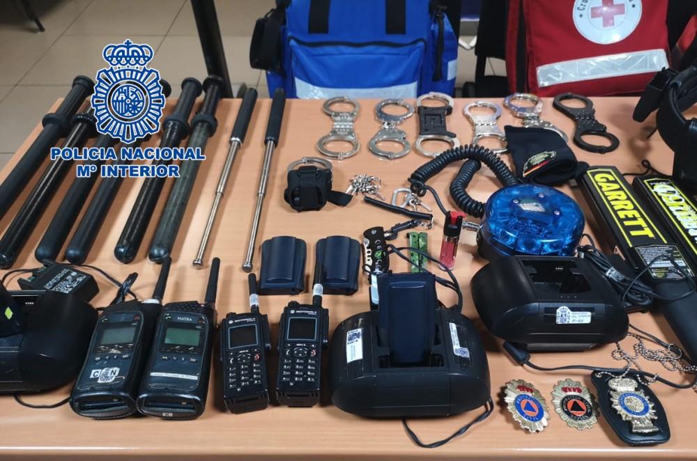 Con todos los indicios, se realizaba este mismo viernes la entrada y registro en el domicilio del sector marítimo, en el que se incautaron. dos proyectores, teléfonos móviles, material médico, distintivos y uniformes de empresas de seguridad, uniformidad de diferentes cuerpos de seguridad y médicos, chalecos técnicos y chalecos antibalas, grilletes, defensas extensibles, rotativos policiales, equipos de comunicaciones, linternas.
