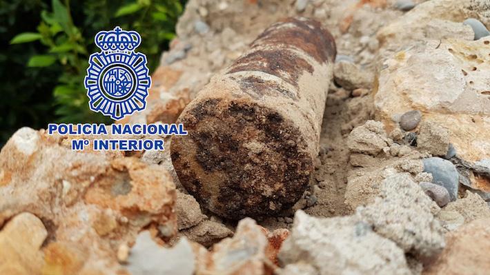 La Policía Nacional ha retirado un proyectil que se encontró un vecino en el interior del muro del cierre de su huerto. Tras su aviso al 091 los agentes que acudieron al lugar y comprobaron que se trataba de un artefacto peligroso. Estaba muy deteriorado en su exterior, pero con la carga intacta. Fue retirado y trasladado a Valencia por los especialistas en explosivos de la Policía Nacional (TEDAX).