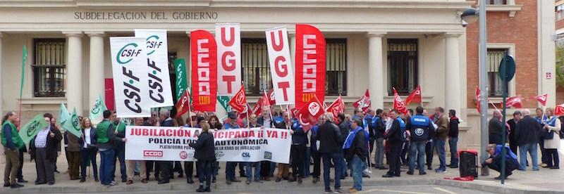 Segunda concentración de la Policía Local y Autonómica de Castellón para exigir al Gobierno que cumpla con su compromiso de aprobar el Real Decreto que adelanta la edad de jubilación. La concentración ha tenido lugar hoy viernes a las 11:00 h, frente a la Subdelegación de Gobierno de Castellón, donde se ha dado lectura al manifiesto, anticipando que, de no cumplirse los compromisos pactados en materia de jubilación anticipada para el colectivo policial, las actuaciones próximas serán más numerosas y más contundentes.