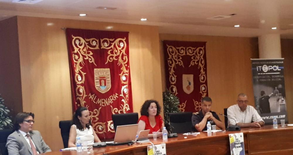 Més d'un centenar de policies locals, guàrdies civils, policies nacionals, o funcionaris de presons han participat aquest matí en el Saló de Plens de l'Ajuntament d'Almenara en una ponència formativa organitzada des de la Policia Local del municipi titulada 'Ús de la força policial en les detencions' que ha comptat amb especialistes en la matèria com el Jutge Degà de Nules, Jacobo Pin Godos, la catedràtica de Dret Penal de la Universitat Jaume I, Maria Luisa Entenimentada Arnau, i Fernando Carrillo Conejero, ex- guàrdia civil i psicòleg.