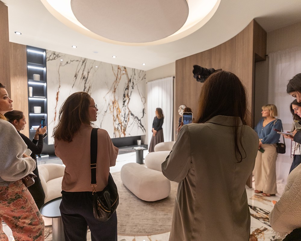 XTONE reestructura sus instalaciones con nuevos ambientes que consolidan los conceptos planteados en 2025. Su lobby, que explora la relación entre material y naturaleza, genera una narrativa audiovisual que evoca profundidad y continuidad. La firma también ha inaugurado la zona Altissima, con un lounge exclusivo y una exposición que muestra la versatilidad técnica y estética de la piedra natural.