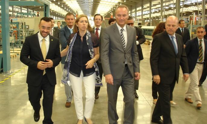 El conseller Juan Carlos Moragues junto María José Soriano en la visita que ha realizado a Porcelanosa.
