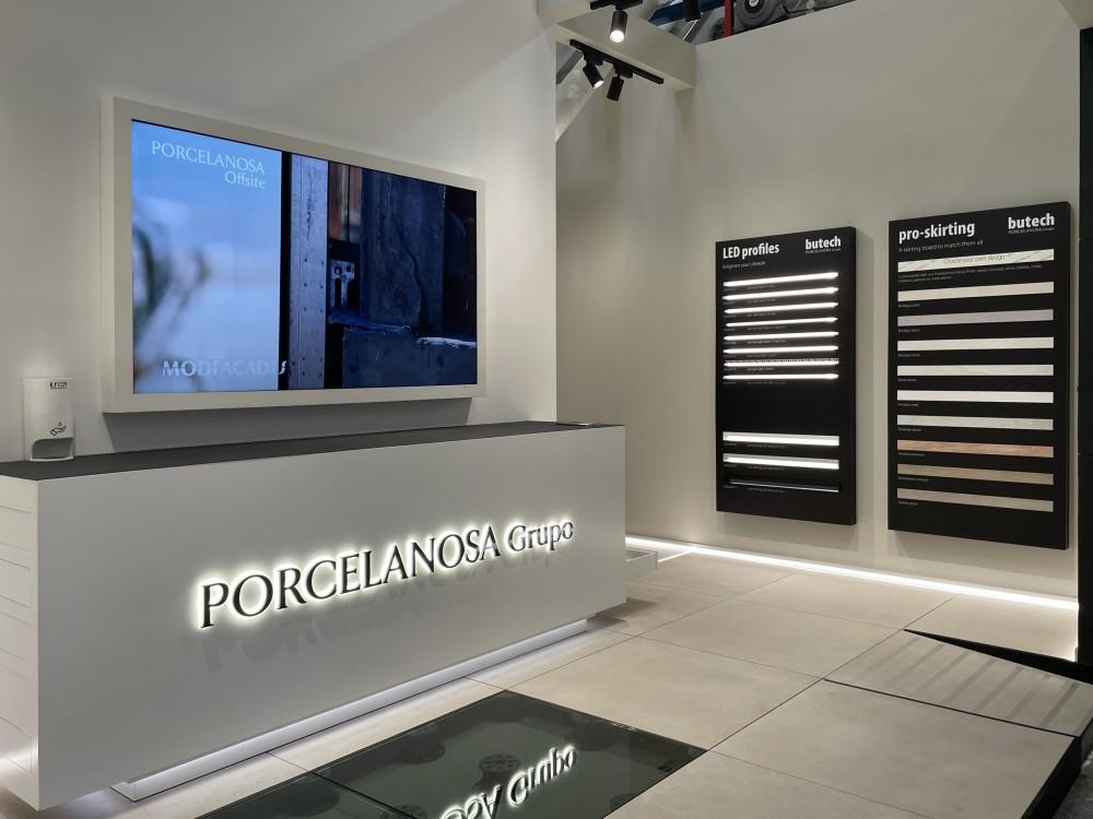 La compañía Butech de PORCELANOSA también asistirá a la Feria de Bolonia con un espacio corporativo (B182) orientado a las soluciones técnicas y a las construcciones industrializadas. Con 50 m2 de extensión y varias zonas especializadas, en este estand se muestra la cerámica espesorada de 100 cm x 100 cm y 20 mm Thicker, un diseño de escaleras voladas con Bottega Caliza de Porcelanosa o los últimos avances de construcción modular con el baño industrializado Monobath en plataforma giratoria. Además, también habrá estancias dedicadas a los sistemas de drenaje para piscinas Pool-Deck y los zócalos Pro-Skirting personalizados.