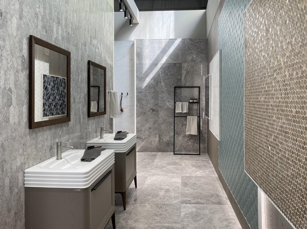 La multinacional cerámica orienta sus series y ambientes a grandes proyectos del sector residencial y contract e incorporan maderas y textiles