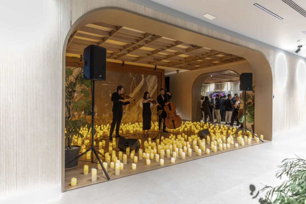 Los materiales de Porcelanosa Grupo revisten los espacios donde tendrán lugar los afterworks, convirtiéndose en los verdaderos protagonistas de estos encuentros. En ellos, los clientes pueden experimentar de primera mano las sensaciones que transmiten sus diseños en un contexto social real.