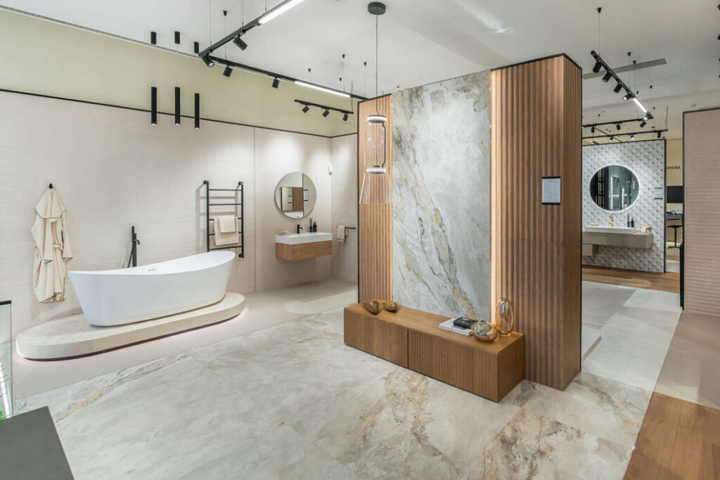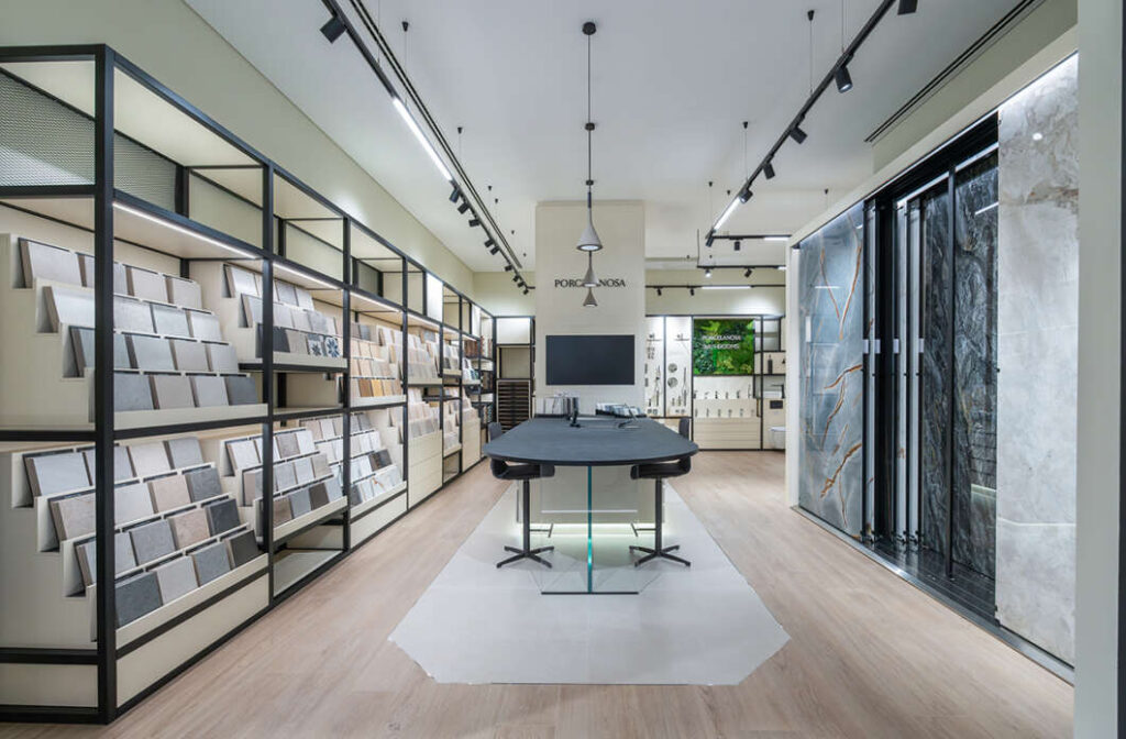 La nueva tienda incorpora algunas de las últimas colecciones de las diferentes firmas de Porcelanosa Grupo, destacando el modelo marmoleado Vendome, o los decorados de Terra, de Porcelanosa. El cliente también podrá ver la bañera Lounge Fluid, un diseño de Simone Micheli para Noken, o el mosaico de piedra natural Creta Mint, de L' Antic Colonial. Además, el espacio incorpora una cocina SmartKitchen con la encimera y la isla revestidas con el modelo XTONE Calatorao.