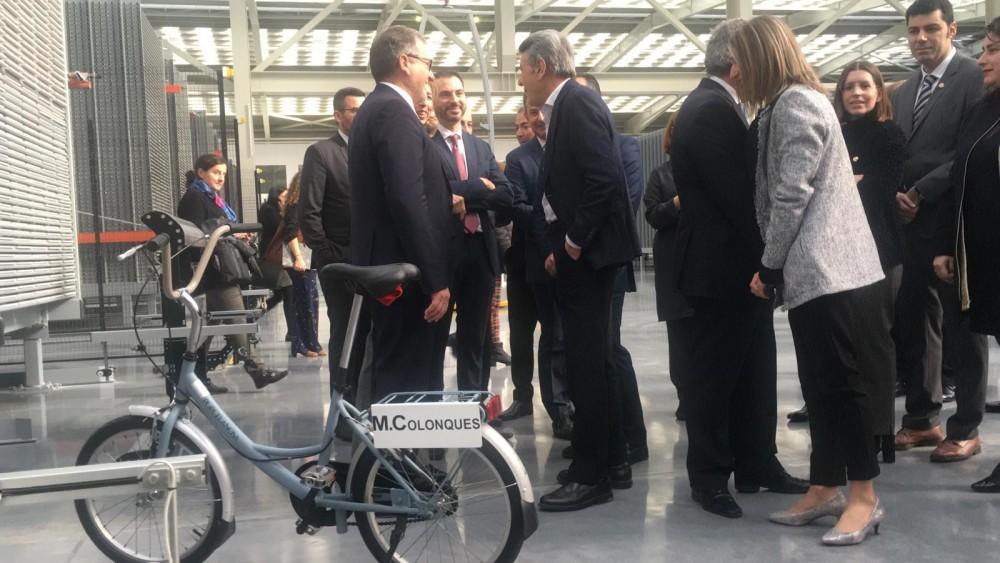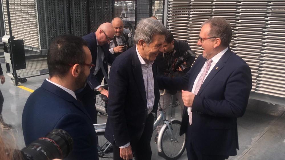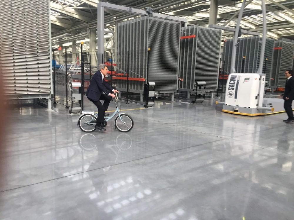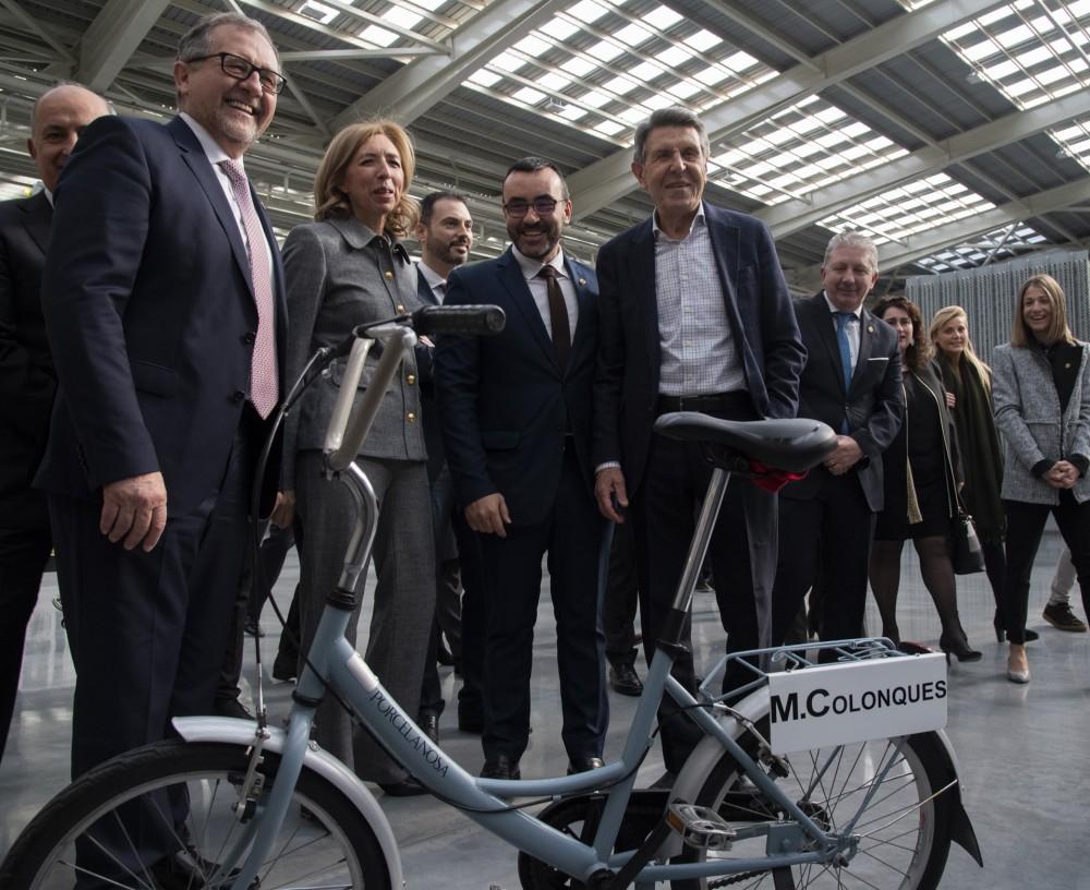 Manuel Colonques ha llegado en bici a la visita en la planta de revestimiento.