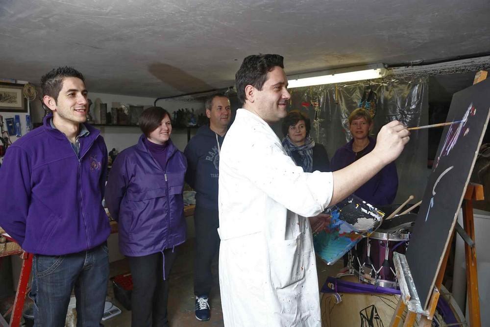 El artista local Juan Poré (Burriana, 1979) trabaja incansable para dar los últimos retoques a la obra que será imagen del cartel de la XVII Exaltación de Bombos y Tambores Provincial ‘Ciutat de Borriana’ que, por primera vez, organiza la Asociación de Bombos y Tambores de la Santa Faz de Burriana. La iconografía propia de la fiesta y las referencias a Burriana son fuente de inspiración para este creador multidisciplinar con larga experiencia en el cartelismo. Artista precoz, alumno de Tomás Sendra, Pepe Biot o Arturo Doñate, entre otros, su vocación artística en el campo de la pintura y la escultura se ha compaginado con la pasión por el cartelismo. Muchas son las localidades que anuncian fiestas, carnavales, muestras o festivales a través de los pinceles de Juan Poré. Es el caso de Burriana, Sueca, Vinaròs, Alicante, Almenara, Moncofa, Onda, Betxi, Vila-real, Nules, Alquerias, Segorbe, Requena, etc.