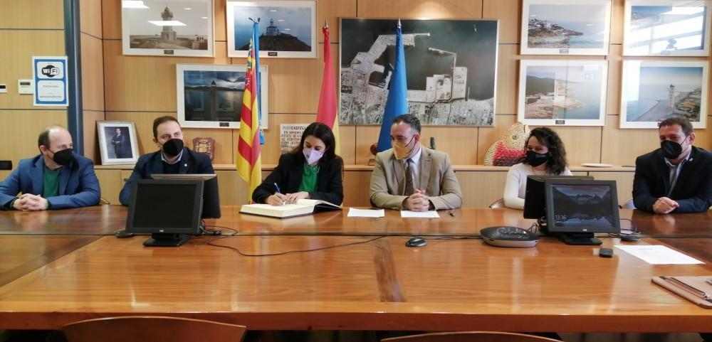 La consellera d'Agricultura, Desenvolupament Rural, Emergència Climàtica i Transició Ecològica, Mireia Mollà, i el president de l'Autoritat Portuària de Castelló, Rafa Simó, han signat un acord pioner que té com a objectiu la millora de la qualitat de l'aire en l'entorn portuari.