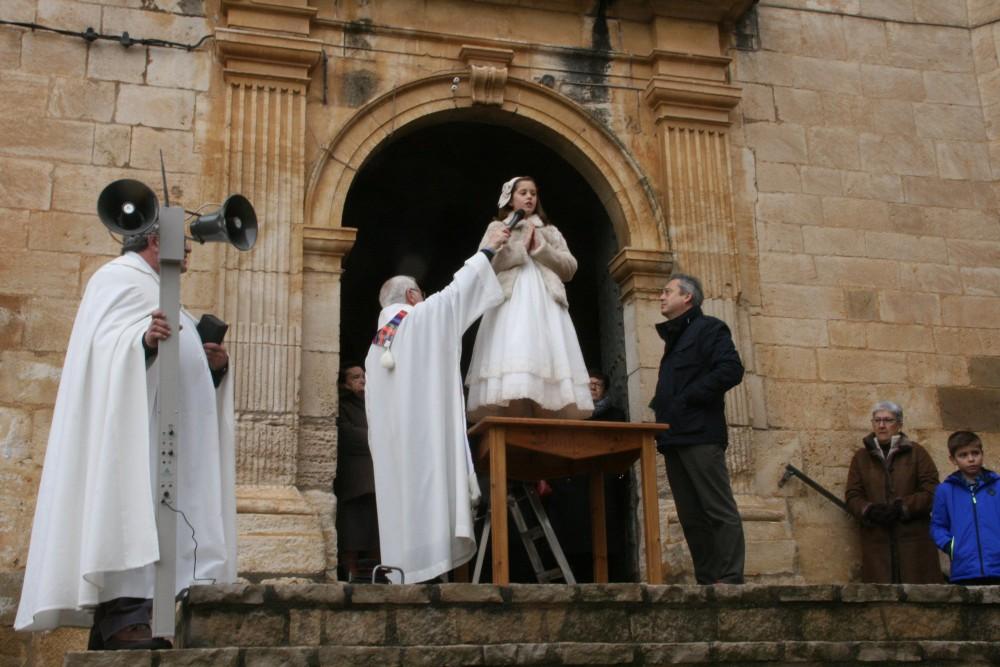 A continuación ha tenido lugar el reparto de estas pastas dulces envueltas en papel. Por la tarde se ha rezado el rosario y a continuación la procesión ha regresado hasta la iglesia. En el recorrido, al paso de la procesión por la plaza del Ayuntamiento se han recitado otras dos poesías por parte de otras dos niñas de la localidad. Con la entrada en la iglesia han finalizado los actos religiosos.