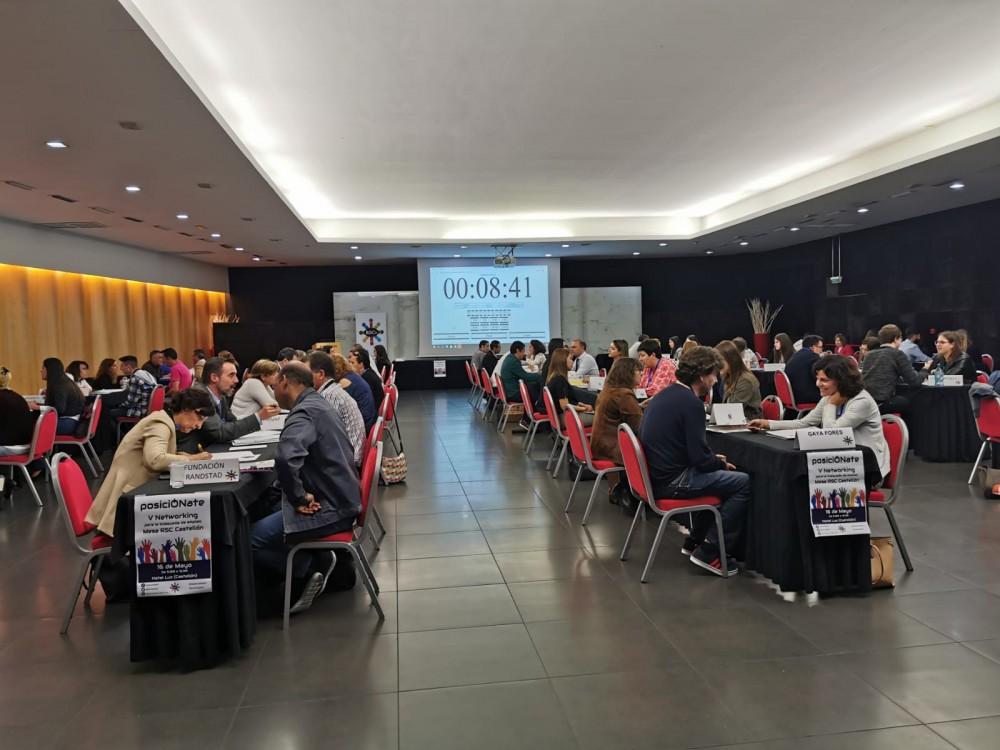 Cinquanta empreses —multinacionals, grans empreses i pimes— participen en PosiciÓNate, una trobada que té com a objectiu fomentar l'ocupabilitat dels qui solen trobar majors dificultats per a fer-se un buit en el mercat laboral. Prop de 500 accions formatives i entrevistes en tot just cinc hores marquen el ritme d'aquesta cita que s'ha celebrat avui com a resultat del compromís voluntari de la Mesa de Responsabilitat Social de Castelló, de la qual forma part la Universitat Jaume I, per a realitzar una activitat conjunta i solidària en inserció laboral.