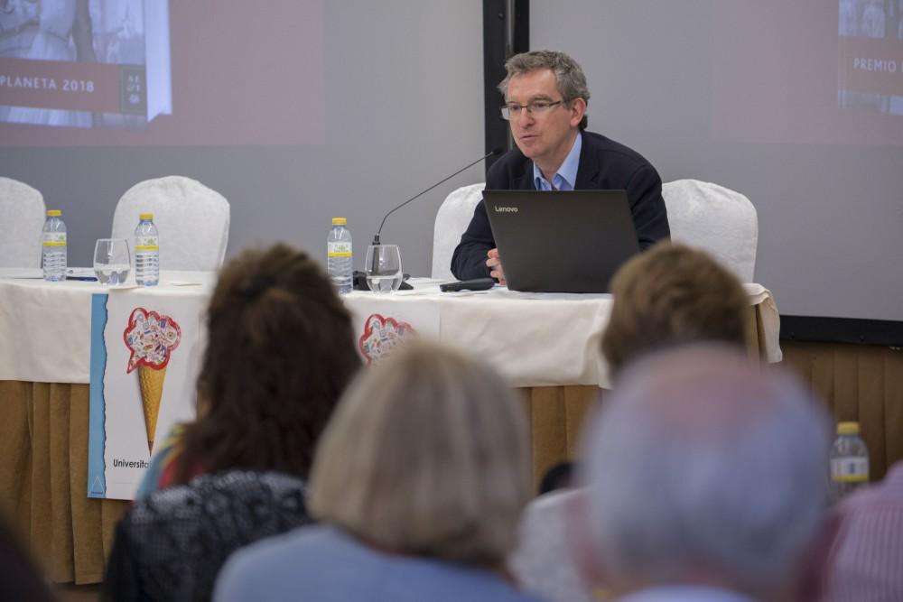 _S9B1696Posteguillo va clausurar, al costat de la vicerectora de Cultura i Relacions Institucionals, Carmen Lázaro, el curs que s'ha impartit i dirigit durant aquesta setmana a Benicàssim: "La literatura i el temps: la recreació del passat a través de la novel·la". I també, a manera anecdòtica, va recordar l'aventura que va viure en el lliurament dels premis Planeta. "Aqueix matí vaig vindre a l'UJI a donar les meues classes. Vaig acabar, vaig agafar el tram, el tren i va començar el viatge. Mai una novel·la de 700 pàgines havia guanyat un premi Planeta. Però quan nomenen Ayanta Barelli com a finalista només quedaven ja dos pseudònims, per la qual cosa quan ella puja a recollir el seu premi ja saps que només quedes tu. I que hauràs de parlar davant 1.000 persones. Davant els millors escriptors i escriptores. En la meua solapa portava el pin de l'UJI, sabia que no podia donar les gràcies a cap institució pública o privada, però per a mi, treballar en aquesta universitat és un privilegi i volia fer-ho visible", va explicar.