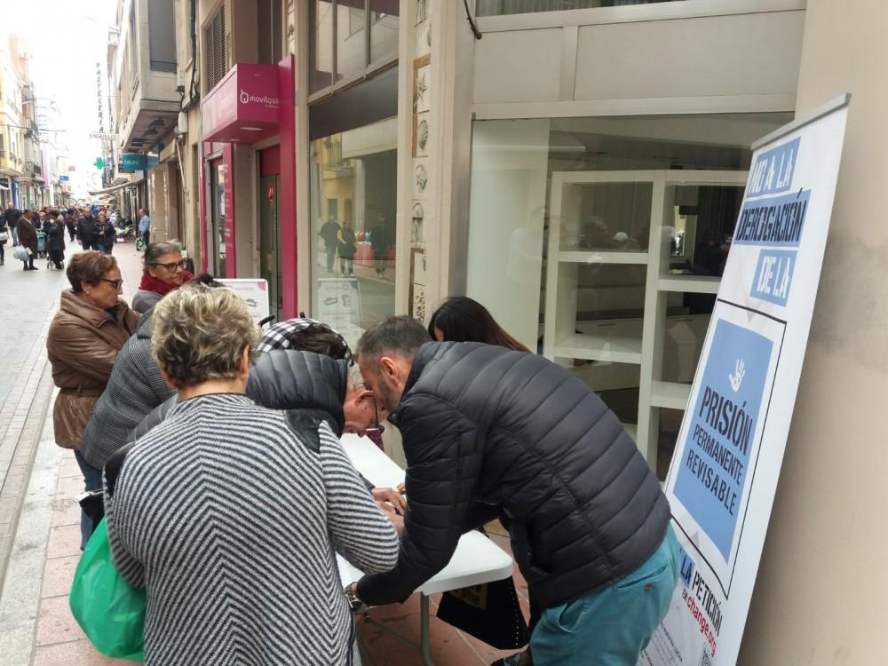 Recogida firmas Burriana (2)La taula instal•lada avui en la plaça Martí de Viciana per a arreplegar suports per a la presó permanent revisable ha tornat a reunir a desenes de veïns que s'han acostat fins a la taula instal•lada pel PP de Borriana per a recaptar suports a la iniciativa ciutadana. “Aquesta no és una demanda ideològica, no té color polític, únicament posa en valor el que la societat espanyola ens està reclamant. I no és una altra mesura que mantenir i reforçar la presó permanent revisable per a garantir que els qui cometen crims que atempten contra la vida mereixen tot el càstig que imposa la Justícia”.