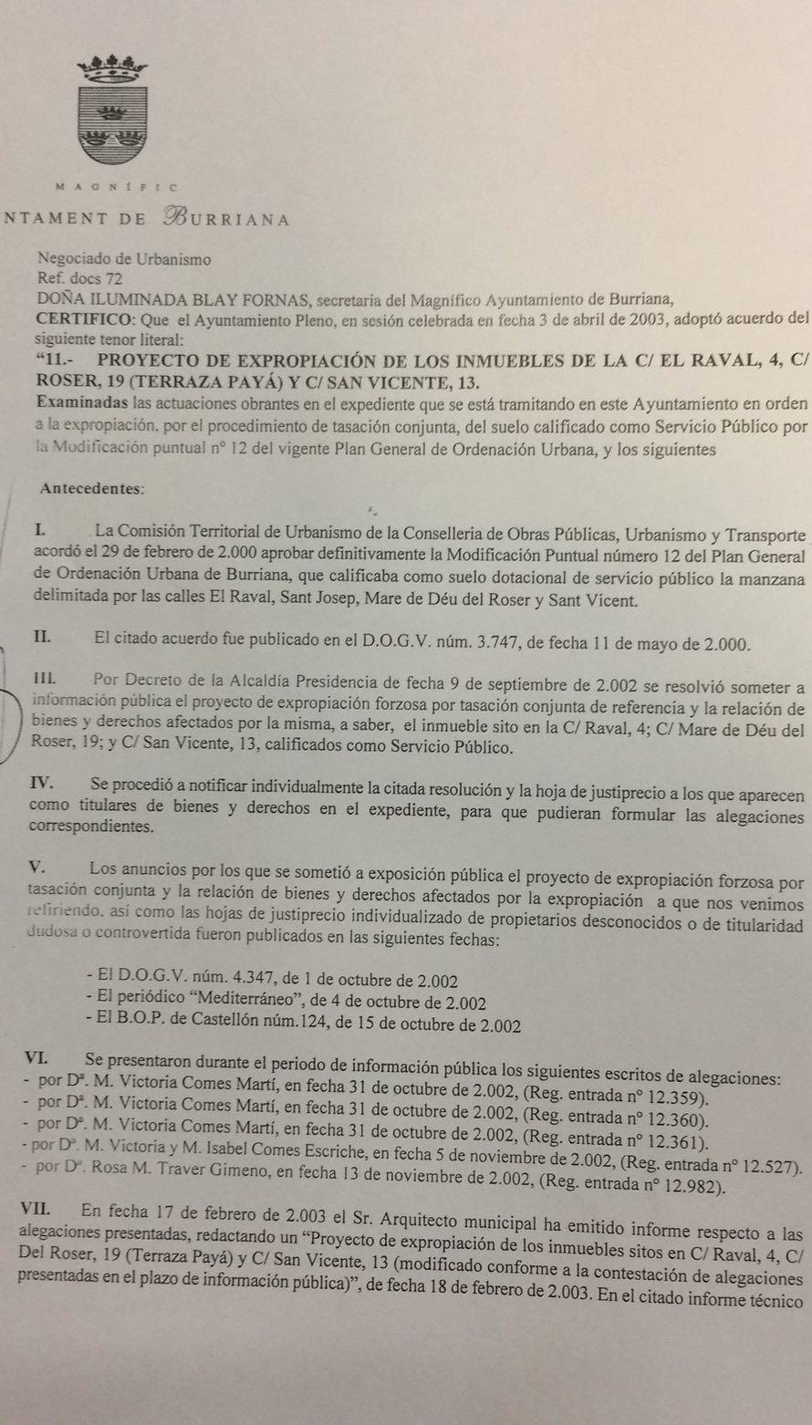 Cesión suelo Terraza PayáEl PSPV de Borriana negocia des de fa un any la construcció d'un supermercat en la Terrassa Payá el sòl de la qual va ser expropiat l'any 2000 per a dedicar-ho a ús públic i d'aparcament. El 29 de febrer de l'any 2000 la Comissió Territorial d'Urbanisme aprovava amb caràcter definitiu la modificació puntual del Pla General d'Ordenació Urbana de Borriana que qualificava com a sòl dotacional de servei públic la poma que avui la ciutat coneix com a Terrassa Payá. “La mateixa que el PSPV pretén privatitzar atorgant en règim de concessió aquest terreny a una superfície comercial”.