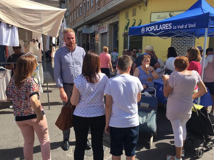 El Partido Popular de la Vall d’Uixó ha estado en el tradicional mercado de los viernes con el candidato número dos al Congreso de los Diputados, Óscar Clavell, quien ha tenido la posibilidad de hablar con multitud de personas de la comarca de la Plana Baixa que se han acercado a la ciudad castellonense. Durante el acto, Clavell ha pedido el voto para el Partido Popular porque “el próximo domingo nos jugamos el futuro, la generación de riqueza, la creación de empleo y nuestra identidad como pueblo”.