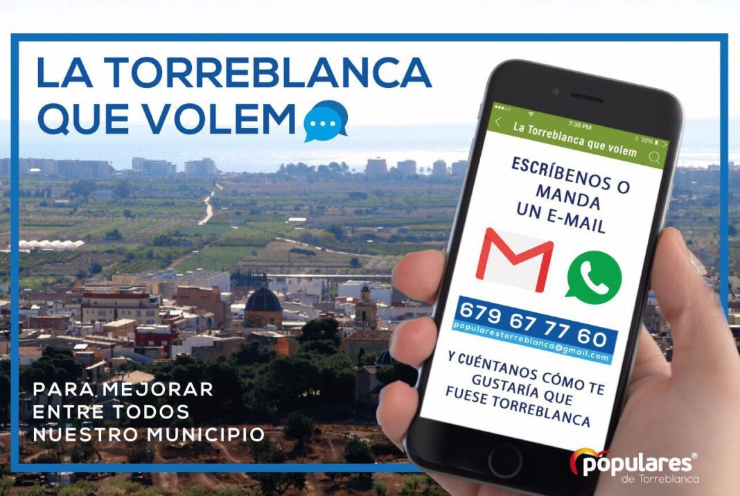 Cabe recordar que para recopilar todas estas propuestas el PP ha habilitado dos vías de comunicación vecinal; una de ellas a través de Whatsapp en el teléfono 679 677 760 y, la otra, vía telemática, en el correo electrónico popularestorreblanca@gmail.com.