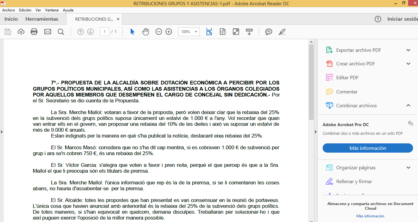 La regidora del PP, Merche Mallol, ha explicat que, “a dia d'avui i malgrat encarar la recta final de la legislatura, en la web municipal l'única informació que apareix sobre sous és la proposta d'alcaldia aprovada en el primer plenari sobre la dotació econòmica a percebre pels grups polítics i els honoraris per assistència a òrgans col•legiats però ni rastre del que cada regidor percep per dedicació exclusiva o per asistincia a plens, comissions, juntes de govern o juntes de portaveus”.