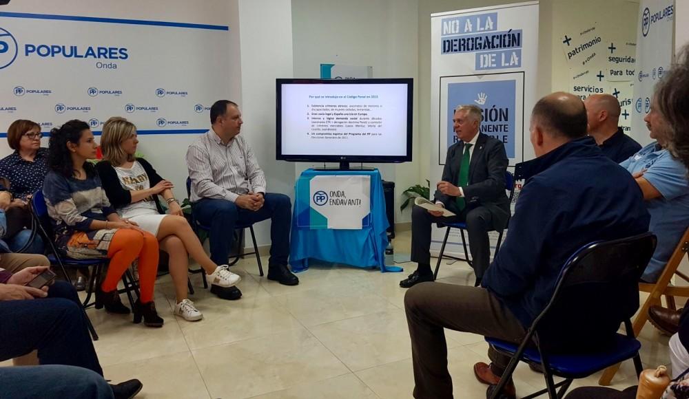 El Presidente del PP Onda, Salvador Aguilella, "muchos vecinos han solicitado poder firmar en la campaña iniciada por los familiares de las víctimas, y nos hemos sumado a esa demanda. Primero realizando una charla en la que se ha explicado que esta no está en contra de la reinserción, como argumentan algunos partidos políticos, sino todo lo contrario". De ahí el concepto de revisable ya que no condena 'sine die'.