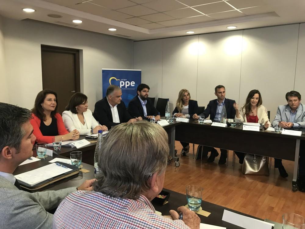 En la reunión también han participado los eurodiputados del PP Ramón Luis Valcárcel y Teresa Jiménez-Becerril, así como Carmen Crespo, portavoz del PP en el Parlamento andaluz.