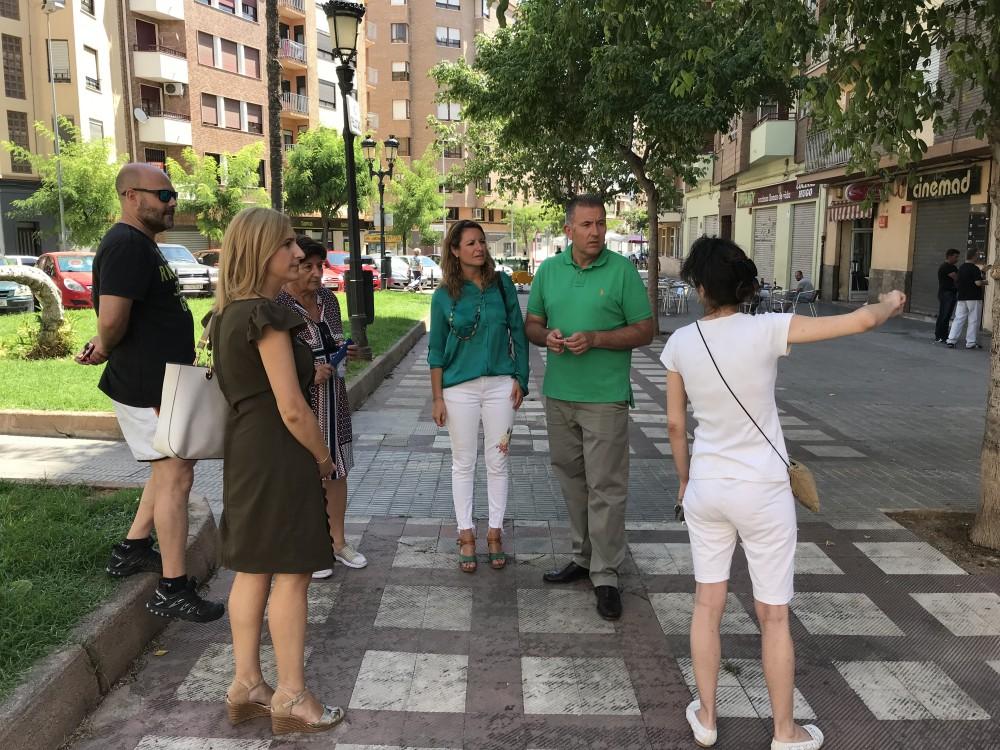 Carrasco, que se desplazó personalmente al barrio junto a los ediles Salomé Pradas y Vicent Sales, comprobó junto a los vecinos la necesidad de una actuación en la zona que se traduzca en mejoras urbanísticas y estudie la movilizad del denso tráfico que registran las calles de alrededor. Necesidades recogidas en la propuesta de 2015, la cual contemplaba un acceso restringido a coches y zona de aparcamiento, zona de juegos infantiles, terrazas, mobiliario urbano, como bancos y papeleras, y espacios verdes con arbolado para generar zonas de sombra.