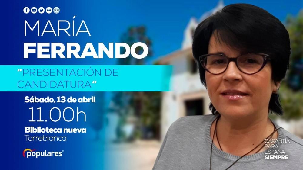 El PP realizará el sábado, a las 11:00 horas y en la Biblioteca Nueva, el acto de presentación de la candidatura liderada por María Ferrando para "dar a conocer a los torreblanquinos un equipo hecho desde la responsabilidad, la pasión y el compromiso con el crecimiento y desarrollo de nuestro pueblo"