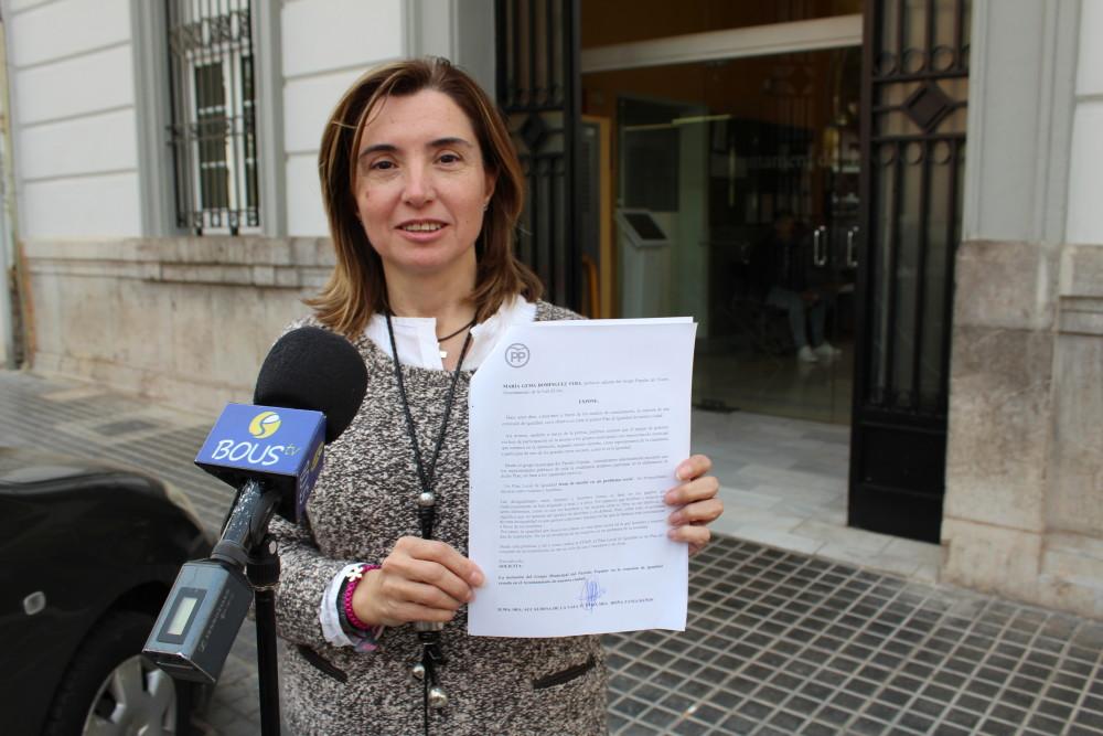 La portavoz adjunta del Partido Popular de la Vall d'Uixó, Gema Domínguez, ha presentado esta mañana por registro una solicitud dirigida a la alcaldesa Tania Baños para poder participar en la comisión de Igualdad. "Hace un par de semanas conocimos a través de los medios de comunicación que se iba a crear la comisión de Igualdad. Por ello, desde el Partido Popular expresamos nuestra voluntad de participar en la comisión y hace diez días pedimos a través de los medios de comunicación poder formar parte de la misma".