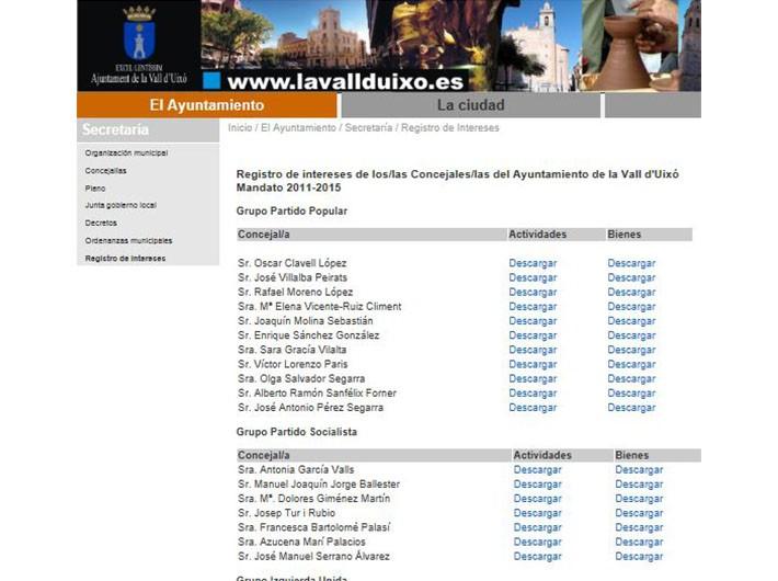 El Partido Popular de Vall d'Uixó ha denunciado la opacidad del gobierno tripartito de izquierdas porque "tres meses después de tomar posesión de su cargo, siguen sin colgar en la página web del Ayuntamiento el registro de intereses de los 21 concejales que formamos la corporación municipal". Así lo ha asegurado la edil popular, Yolanda González.