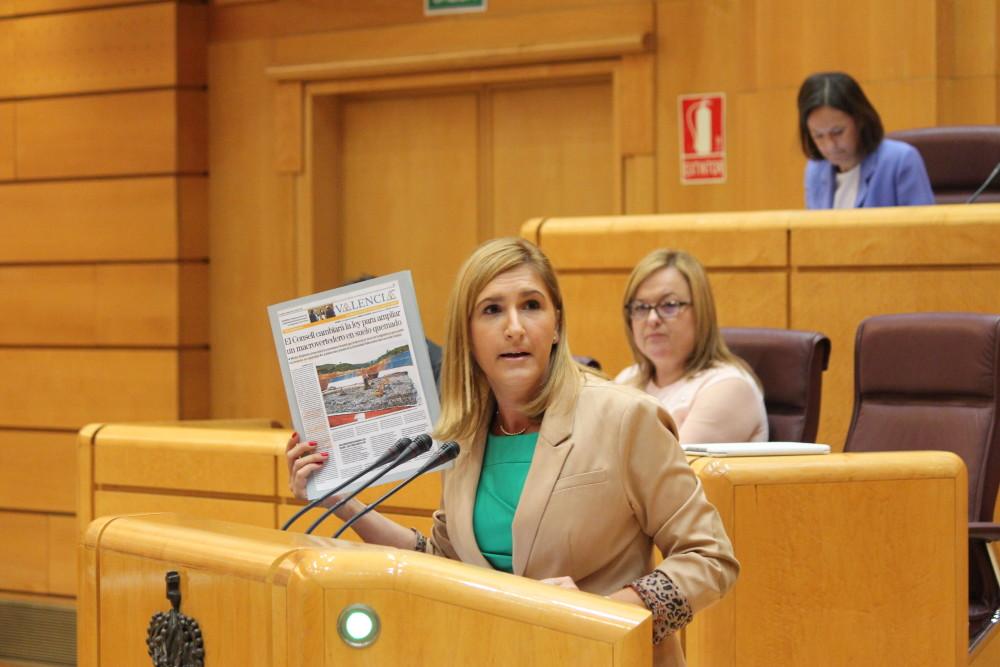 Antes de finalizar su intervención, Salomé Pradas ha recordado a los senadores del PSOE y Podemos que en la Comunidad Valenciana están legislando "y actúan al contrario de lo que ustedes están pidiendo hoy aquí".