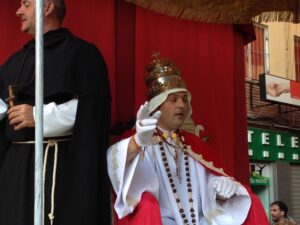 Y les siguió la Iglesia con sus Obispos, que desfilaron perdonando pecados y repartiendo indulgencias. E incluso, un ‘Papa Luna’ interpretado por el alcalde de Peñíscola, que también perdonaba los pecados a diestro y siniestro.
