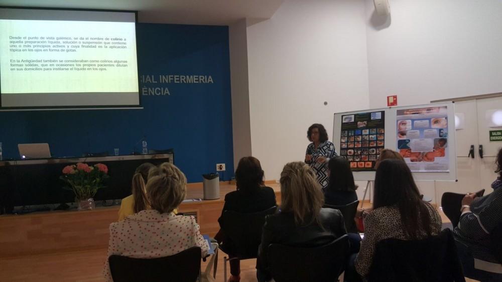 La ponencia ganadora ha sido presentada por la supervisora del servicio, Francisca Samblás. Con el título 'Detrás de la historia de los colirios', Samblás hace una revisión histórica de la utilización de los colirios, desde Persia, Antiguo Egipto, Grecia y Roma hasta nuestros días. En su exposición ha abordado cómo se elaboraban y las