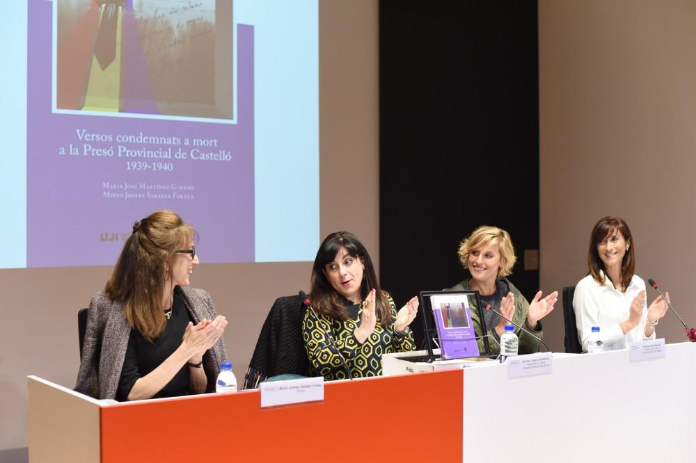 La regidoria de Cultura de l’Ajuntament de Castelló, encapçalada per Verònica Ruiz, juntament amb la Universitat Jaume I de Castelló, han estat a la presentació del llibre ‘Versos condemnats a mort a la Presó Provincial de Castelló, 1939 - 1940’ de les autores María José Martínez Gimeno i Miren Josebe Sabater Forte, en l’edifici Menador.